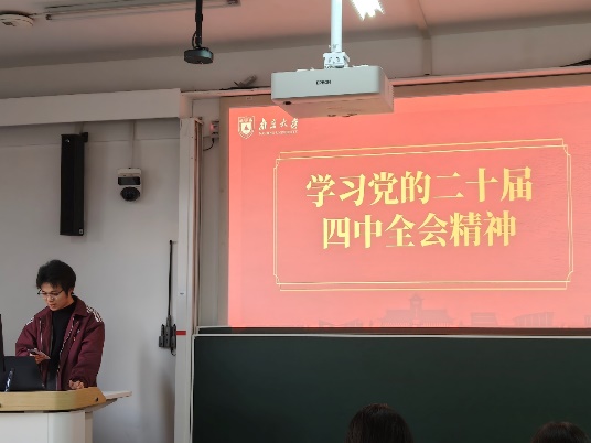 參觀結(jié)束后,同志們回到浦口校區(qū)1—303A展開(kāi)了王荷波紀(jì)念館參觀心得交流及黨的二十屆四中全會(huì)精神學(xué)習(xí)的主題會(huì)議,本次討論由2025級(jí)碩士生第二黨支部書記楊興埕主持。