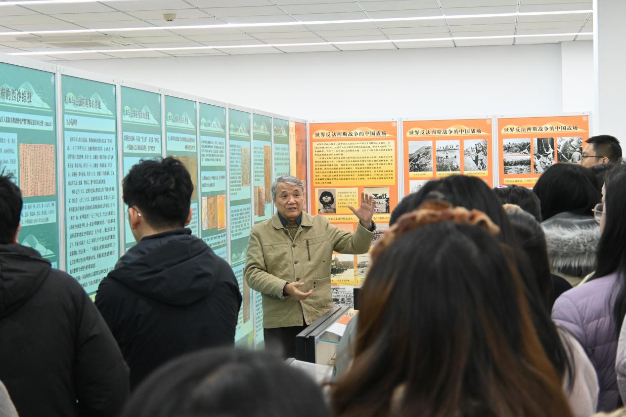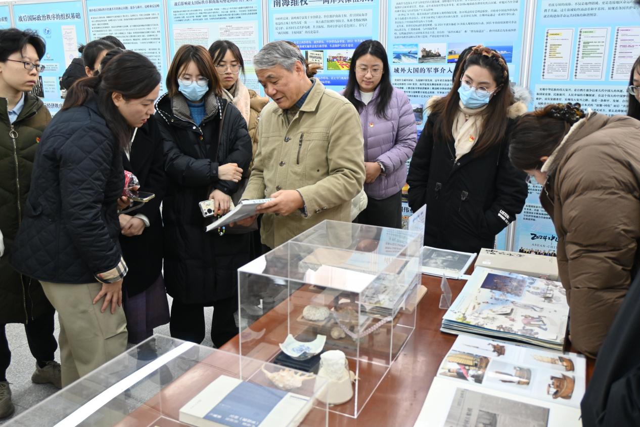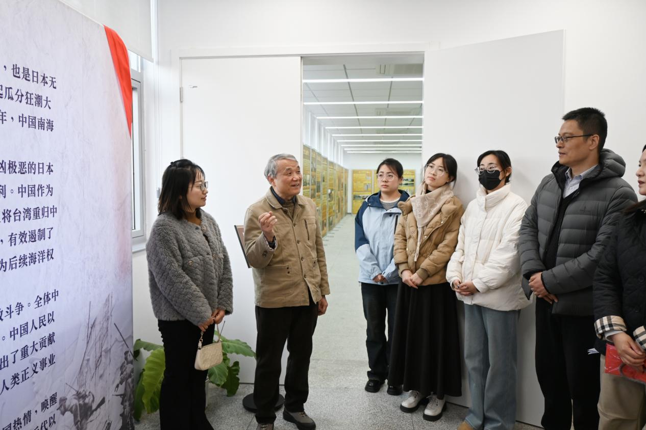 展覽位于鼓樓校區(qū)圖書館五樓展廳,由南京大學南海研究協(xié)同創(chuàng)新中心與圖書館聯(lián)合舉辦,以豐富的歷史圖片、文獻資料、地圖及實物,系統(tǒng)展示了自晚清以來中國領土的變遷、抗日戰(zhàn)爭勝利后臺灣光復與南海諸島收復的歷史經(jīng)緯,以及新時代中國推動構建海洋命運共同體的愿景。在參觀過程中,支部黨員認真聆聽由南海研究協(xié)同創(chuàng)新中心沈固朝教授所作的生動講解,通過一幅幅珍貴圖像和一段段歷史敘述,重溫了那段波瀾壯闊的民族記憶,深刻認識到維護國家主權、統(tǒng)一和領土完整的重大意義。
