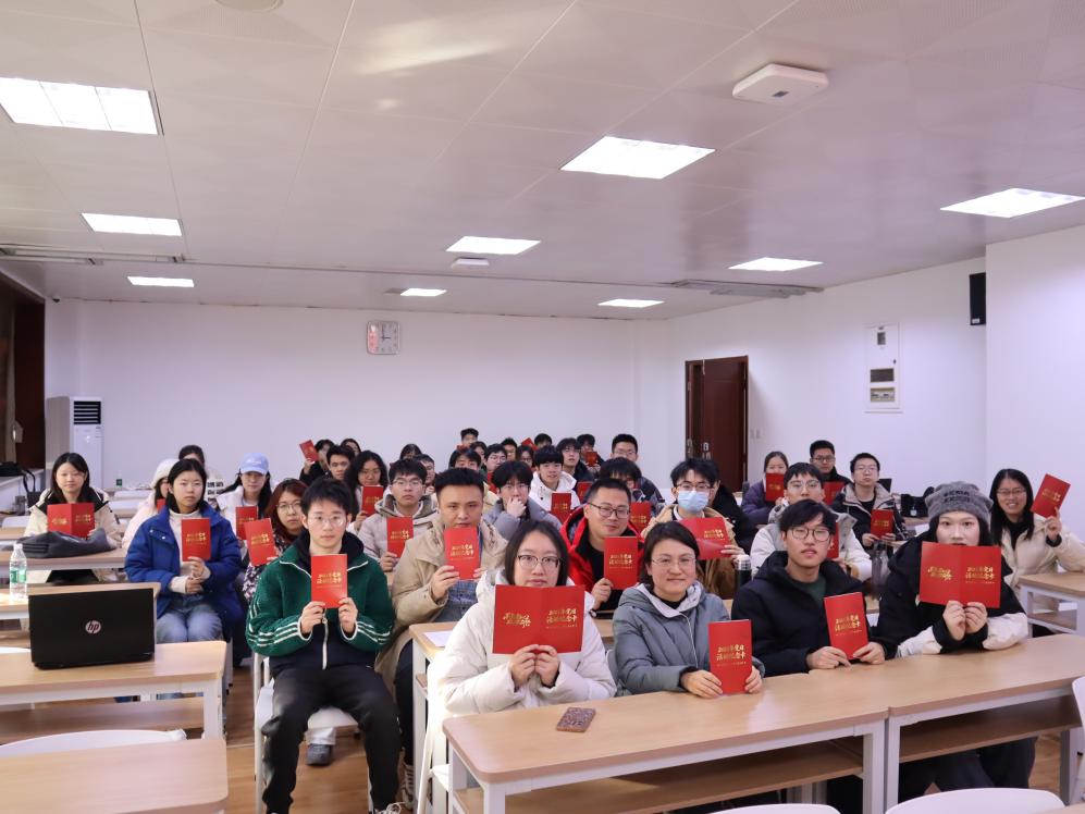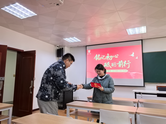 黨課結(jié)束后,在“銘記初心,砥礪前行”環(huán)節(jié)。學(xué)院黨委委員徐薇老師為每位黨員同志發(fā)放了2025年黨日活動(dòng)紀(jì)念卡,卡片記錄了過去一年支部舉辦的豐富多彩的活動(dòng),更承載著對(duì)支部成員的殷切期望與美好祝福。