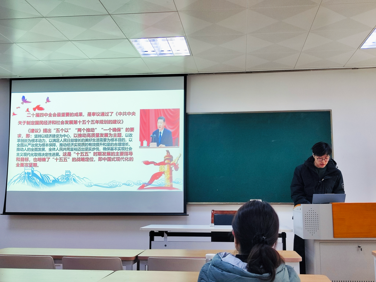 隨后,2025級(jí)碩士生第三黨支部宣傳委員兼紀(jì)檢委員孫劉偉主講“深學(xué)四中全會(huì)精神,實(shí)踐賦能科技強(qiáng)國”主題黨課。他圍繞黨的二十屆四中全會(huì)精神,結(jié)合“十五五”時(shí)期發(fā)展規(guī)劃,聚焦“堅(jiān)持高質(zhì)量發(fā)展”“加快高水平科技自立自強(qiáng)”“建設(shè)現(xiàn)代化產(chǎn)業(yè)體系”等核心論述,系統(tǒng)解讀了全會(huì)提出的新思想、新部署、新要求。孫劉偉表示,作為工程管理領(lǐng)域的研究生黨員,應(yīng)立足專業(yè)所長,主動(dòng)對(duì)接國家戰(zhàn)略需求,在科技創(chuàng)新、產(chǎn)業(yè)升級(jí)等領(lǐng)域找準(zhǔn)發(fā)力點(diǎn),以實(shí)際行動(dòng)為科技強(qiáng)國建設(shè)注入青春動(dòng)能。
