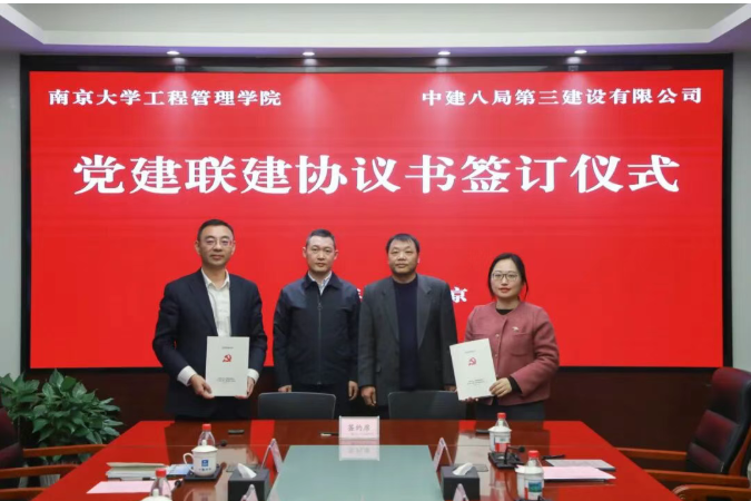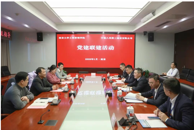 2026年1月22日下午,南京大學(xué)工程管理學(xué)院與中建八局三公司開展黨建聯(lián)建活動。南京大學(xué)工程管理學(xué)院黨委書記陳志云、黨委副書記陳卉、學(xué)院分工會主席王博、MEM中心副主任劉琰,中建八局三公司黨委副書記、總經(jīng)理李磊,總工程師陳剛出席活動。