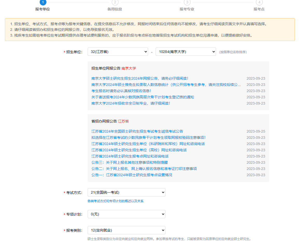 (1)考生提交報(bào)考信息后,不論是否已支付報(bào)考費(fèi),所填報(bào)的“招生單位”、“報(bào)考點(diǎn)”、“考試方式”三項(xiàng)內(nèi)容不能更改!