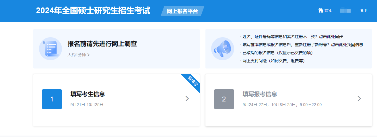 2024年全國(guó)碩士研究生招生實(shí)行網(wǎng)上報(bào)名,網(wǎng)報(bào)時(shí)間:2023年10月8日-25日,每天9:00-22:00;預(yù)報(bào)名工作安排在2023年9月24日至9月27日(每天9:00—22:00);2024年全國(guó)碩士研究生招生考試初試定于2023年12月23日至24日。報(bào)名網(wǎng)址:中國(guó)研究生招生信息網(wǎng)。