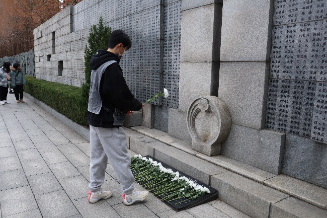 12月17日下午,支部團(tuán)員赴侵華日軍南京大屠殺遇難同胞紀(jì)念館進(jìn)行參觀緬懷。在紀(jì)念館內(nèi),團(tuán)員們聆聽著講解員的詳細(xì)講解,駐足觀看相關(guān)影視資料。為表達(dá)對遇難者無盡的哀思和緬懷,在輔導(dǎo)員柴昭的帶領(lǐng)下,支部團(tuán)員在獻(xiàn)花點(diǎn)依次向遇難同胞駐足哀悼、敬獻(xiàn)鮮花。