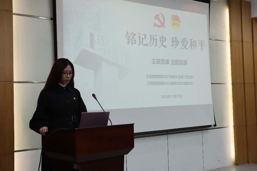 2023年12月13日是第十個南京大屠殺死難者國家公祭日,是南京大屠殺慘案發(fā)生86周年。在此之際,為悼念遇難同胞,傳遞和平祈愿,砥礪復(fù)興之志,工程管理學(xué)院2023級碩士二班團(tuán)支部開展“勿忘國恥·圓夢中華”第十個國家公祭日主題教育團(tuán)日活動。支部團(tuán)員圍繞“銘記歷史,珍愛和平”展開主題團(tuán)課學(xué)習(xí),并赴侵華日軍南京大屠殺遇難同胞紀(jì)念館參觀緬懷,銘記歷史的真相,感悟和平的珍貴。院團(tuán)委副書記、研究生輔導(dǎo)員柴昭、支部全體團(tuán)員參與本次活動。