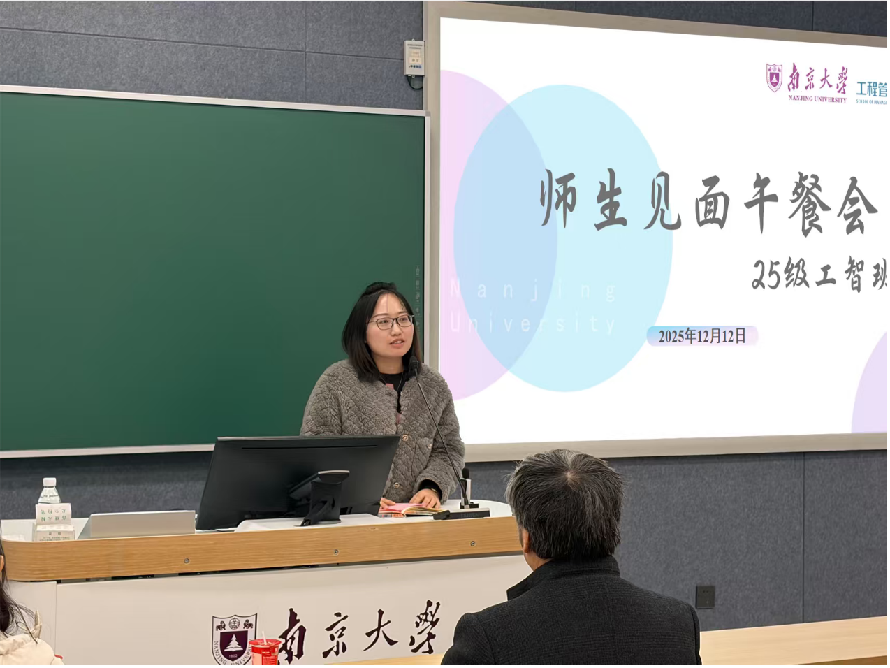 On December 14, 2025, the School of Management and Engineering, Nanjing University held a unique Dean-Secretary Lunch Meeting for the freshmen of the 2025 Experimental Class of Industrial Intelligent System Integration. Yu Honghai, Dean of the School of Management and Engineering, Nanjing University, Chen Hui, Deputy Secretary of the Party Committee of the School, Deng Zeyan and Wang Min from the Freshman College, Li Qian, Director of the Department of Complex Engineering Management, representatives of freshman tutors Tao Sha, Chen Guohua, Xu Wei, Head Teacher Liu Yan, representative of former head teachers Liang Ru, and Counselor Zhuang Bingqing attended the meeting, gathering with all freshmen of the experimental class to conduct in-depth dialogues in a relaxed and harmonious atmosphere. This activity built a teacher-student communication platform in an innovative form, responded to freshmen's concerns, systematically explained the training philosophy, and condensed development consensus through equal and open discussions, guiding freshmen of the experimental class to clarify their learning direction and growth goals as soon as possible, and laying a solid ideological and practical foundation for them to better adapt to college study and life and clarify their growth goals.