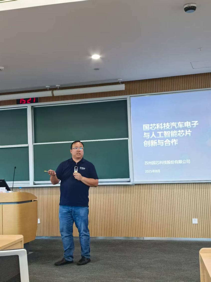 蘇州國芯科技股份有限公司芯片設計中心汪建強副主任以《汽車電子與人工智能芯片的創(chuàng)新與合作》為題分享了國產芯片的發(fā)展歷程和實踐經驗,展現(xiàn)了科技企業(yè)在關鍵技術研發(fā)中的探索與成果